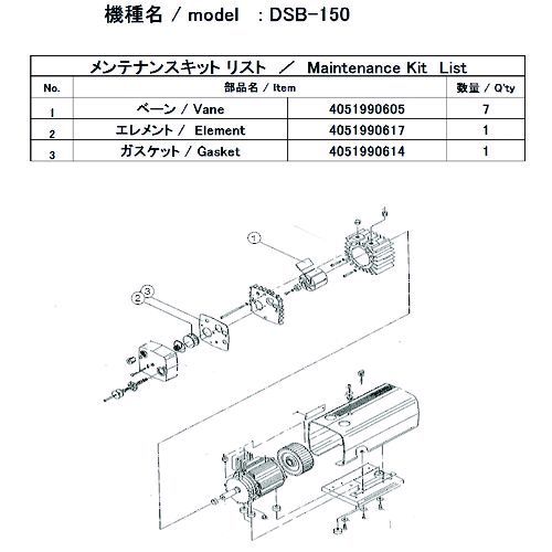 ●修理時に通常交換するベーン、フィルターハウジングガスケット、フィルターなどの部品セットです。