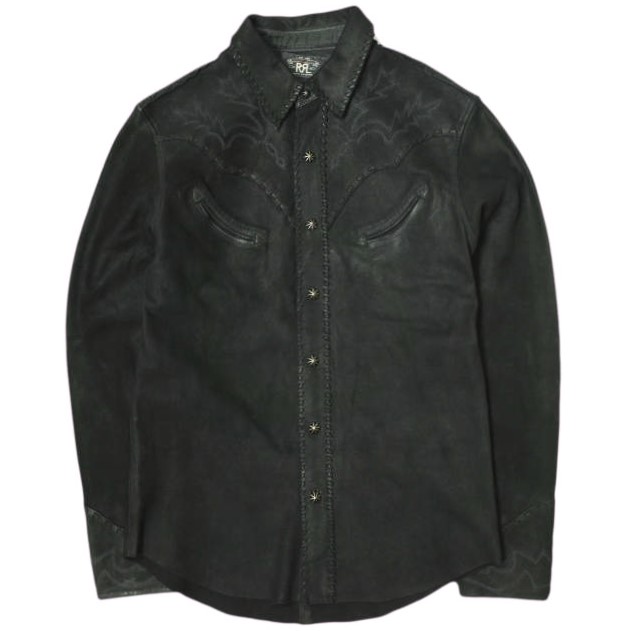 人気を誇る新品 RRL ダブルアールエル シープスキンウエスタンシャツ 782943785001 S ブラック Double RL ラムレザー 定価319,000円 トップスの通販は