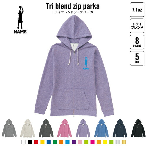 バスケ3 名入れジップパーカー 裏起毛 パーカー 柔らかい 薄手 トライブレンド メンズパーカー レディースパーカー スウェット バスケット ボール 団体の通販は