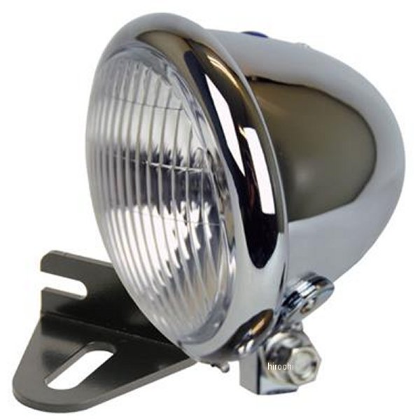 クロームのヘッドライト。車種専用のステー付き。H4バルブ、6055W、ボトムマウント。配線色 青:ハイビーム 白:ロービーム 緑:アース