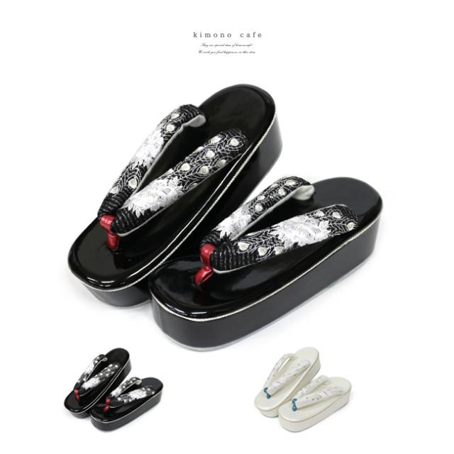 ぽっくり 下駄 黒 ブラック 白 桜 さくら 丸菊 花 刺繍 こっぽり ごっぽり 舞妓さん風 花魁風 振袖 成人式 卒業式の通販は