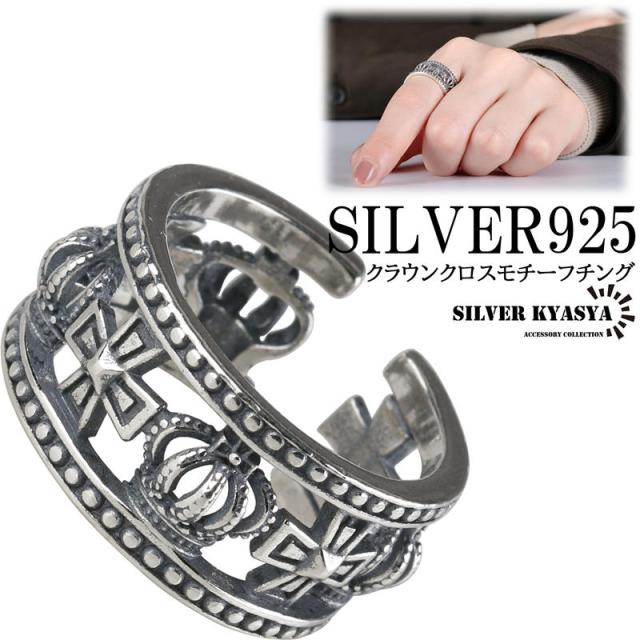 シルバー925 クロス クラウン リング ラージリング 王冠 十字架 シルバー 銀 燻し ブラック フリーサイズ 13号 19号 金属 アレルギー フリーの通販は