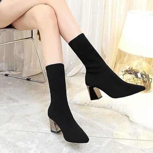 ニットブーツ 厚底 ソックス風 ショートブーツ レディース 秋 冬 おしゃれ 靴 美脚 脚長 カジュアル 通学 快適 シンプル きれいめの通販は