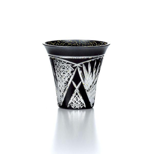 ●「八千代切子・墨色」は、深みを持った墨色に趣のある切子と金箔を加えることで、多種多様な輝きを楽しめる逸品です。