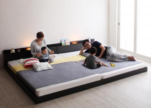 ベッド ワイドキング 220(S+SD) 国産ポケットコイルマットレス付き ブラック 低床 連結 照明 棚付 宮付 コンセント すのこ〔代引不可〕の通販は