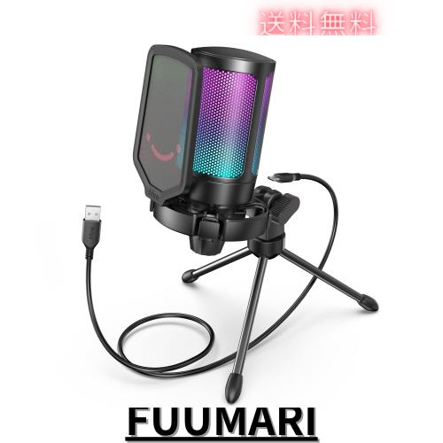 FIFINE USB コンデンサーマイク ゲーミングマイク RGBライティング 配信用マイク カーディオイド単一指向性 プラグ&プレイ パソコン/プ