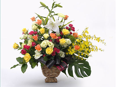 花 材:ユリ、オンシジウム、バラ、グリーン 他